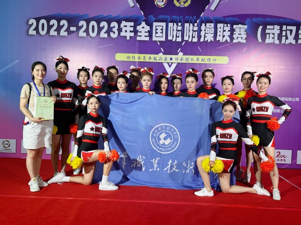 武汉职业技术学院啦啦操代表队由汪胜主任担任领队,李臻老师担任教练,整个比赛团队克服种种困难,不惧挑战,通过刻苦训练,精益求精,团结协作,顽强拼搏,最终获得规定街舞第二名和规定花球第四名的成绩。