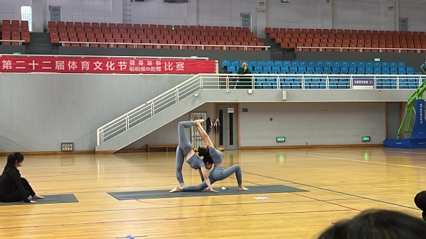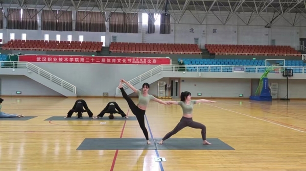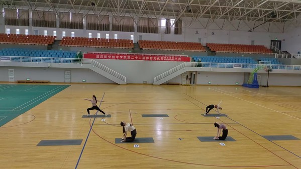 (通讯员 杨敏)5月25日,第二十二届体育文化节健身瑜伽比赛在校体育馆进行。经过激烈比拼,外语外贸学院获得团体第一名。旅游与航空服务学院第二名、电子信息工程学院、商学院并列第三名,计算机技术与软件工程学院、信创学院、建筑工程学院、机电工程学院分获第五到第八名,生物工程学院、文化与传媒学院积极参加比赛。