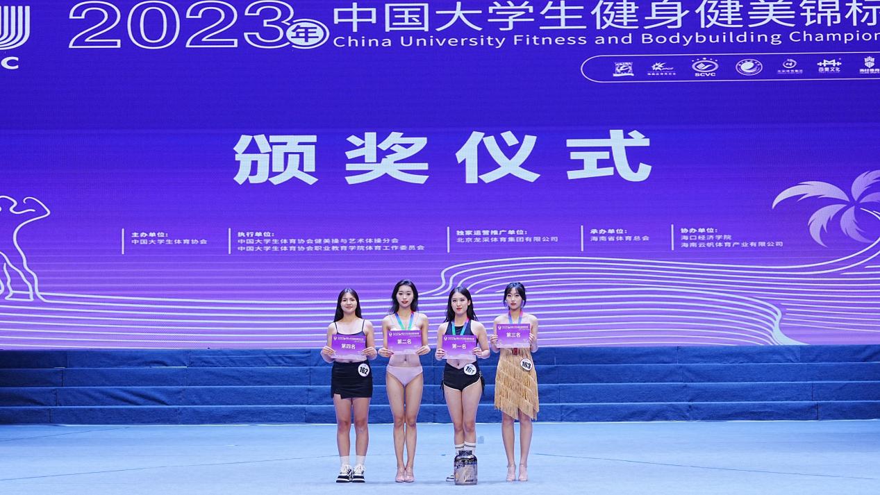 (通讯员 成盼盼 刘喜林)10月24日-26日,2023年中国大学生健身健美锦标赛在海口经济学院圆满落幕。武职代表队,不负众望,再创新高。在单项比赛中获得一个第一名、一个第二名、二个第三名、一个第四名、一个第五名的好成绩,在集体项目比赛中获得第五名的好成绩;并首次获得团体名次—乙组(高职高专A组)团体第四名;刘喜林老师被评为“优秀教练员”;代表队还荣获本次赛事体育道德风尚奖。