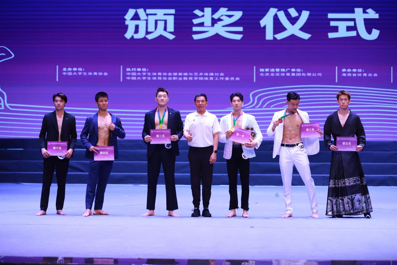 谷一行(右一)获得乙A组男子健身模特B组第五名
