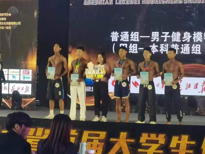 (通讯员 成盼盼 刘喜林)11月19日,2023年湖北省首届大学生健身健美锦标赛在武汉城市职业学院体育馆圆满落幕。经过两天的激烈比拼,我校代表队获得三个第三名、一个第四名、四个第五名、一个第六名、一个第八名、男女集体健美造型项目第七名,并斩获丙组团体总分第三名、丁组团体总分第四名的好成绩。