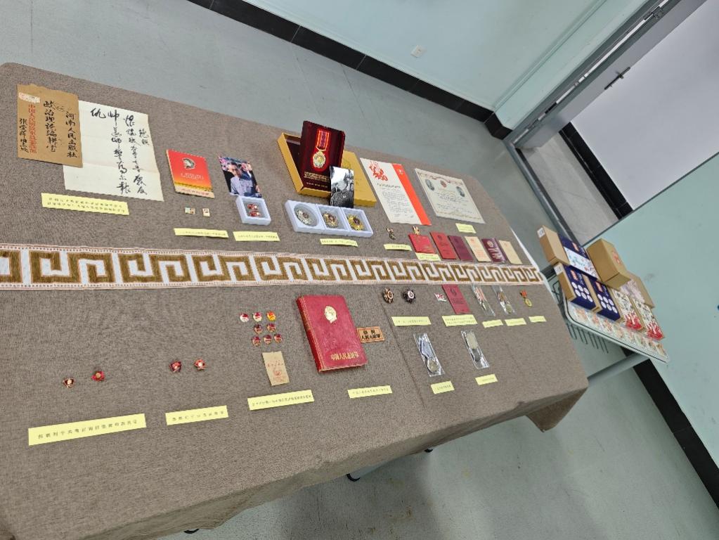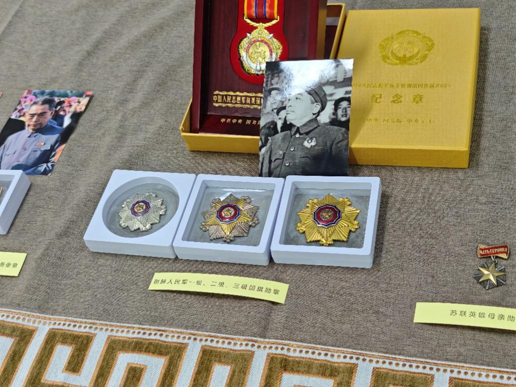 现场展出的还有多件具有历史意义的珍贵物品:包括抗美援朝时期中国人民志愿军纪念章与纪念册、朝鲜授予志愿军的国旗勋章、镌刻毛泽东“为人民服务”题词的像章、苏联在二战期间颁发的卫国勋章、战胜德国与战胜日本奖章,以及其他与辛亥革命相关的重要历史文物。
