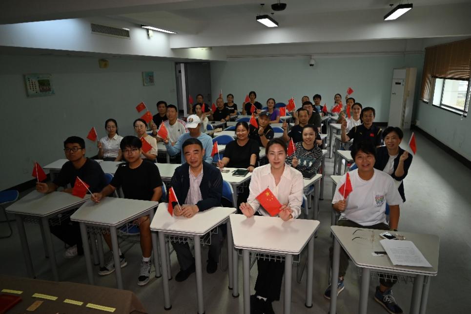 分享会在庄严的氛围中拉开帷幕。体美部党总支书记闫升首先发表国庆爱国主义讲话,她声如洪钟,字字铿锵:“革命先辈用鲜血染红了国旗,他们的精神如同不灭的火炬,照亮我们前行的道路。”这番话深深感染了在场的每一位老师,大家神情专注,眼神中闪烁着敬意与思考。