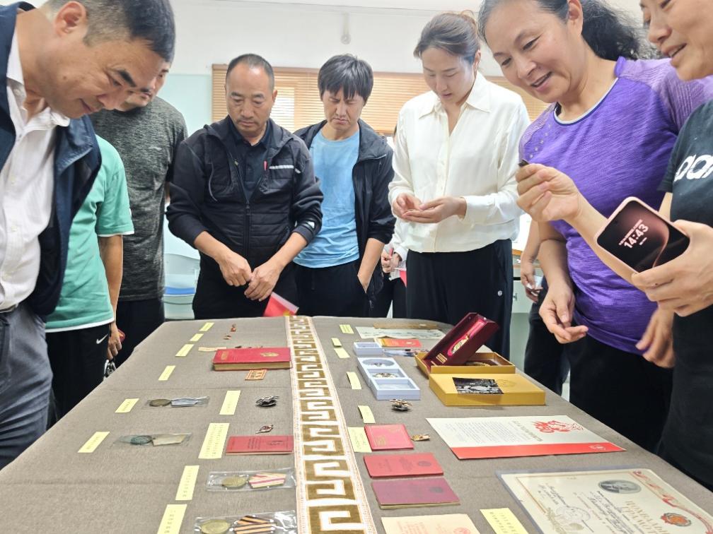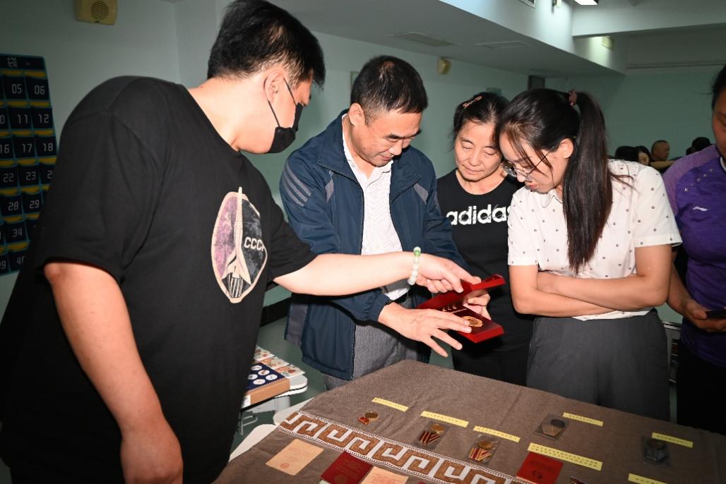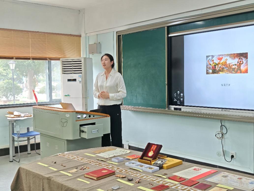 “请大家轻轻触摸,感受历史的重量。”康老师轻声说道。老师们依次上前,指尖轻触冰凉的勋章表面,仿佛穿越时空,触摸到了那段烽火连天的历史。钟娜老师感慨道:“这枚勋章比想象中要沉重得多,就像革命先辈的信仰一样有分量。”
