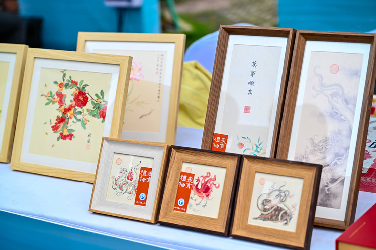 活动现场,学校体育美育工作部教师康峰的文创作品展区前人头攒动,“江上有礼”系列作品立足长江文化与荆楚美学,实现了传统美学符号与当代生活的有机融合;《瑞兽山海图》则以细腻笔触勾勒上古瑞兽,赋予传统瑞兽以当代审美表达,使其从遥远的神话符号转变为可感、可赏、可伴的吉祥象征。这些作品成为当天活动的“文化亮点”,通过消费季平台搭建起传统文化与市场需求的桥梁。