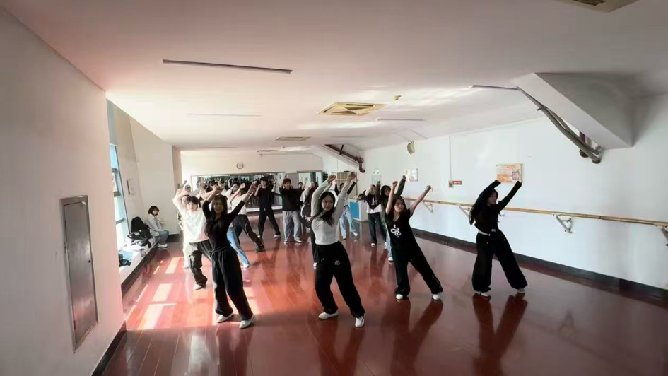 热身结束后,核心学舞环节正式开启。热情活力、动作简单的入门级街舞片段,使氛围变得轻松。教学过程中,采用“分解动作+慢速跟练+完整合乐”的模式,新生们实力强劲,仅用半小时就将舞蹈流畅完成。